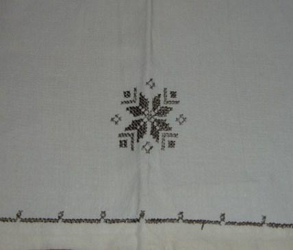 M785M Lovely decorative towel in linen with white embroidery stitch