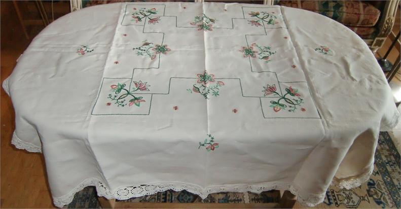M788M 1920s Magnificent Tablecloth English White stitching embroidery