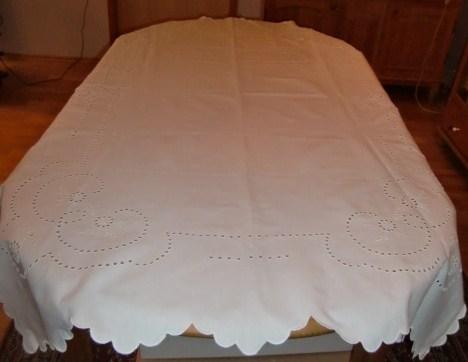 M789M Fabulous magnificent white stitching embroidery tablecloth from the 1920s
