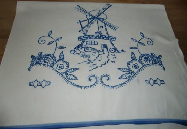 M770M Large linen tea tablecloth with lovely embroidery