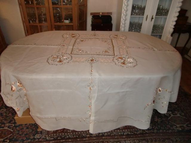 M788M 1920s Magnificent Tablecloth English White stitching embroidery