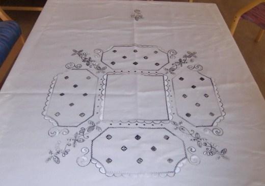M789M Fabulous magnificent white stitching embroidery tablecloth from the 1920s