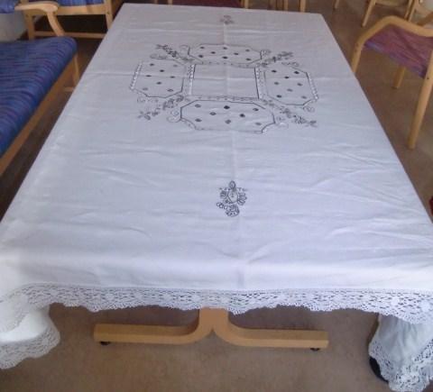 M875M Runner, tablecloth and tray rack in Hardanger stitching
