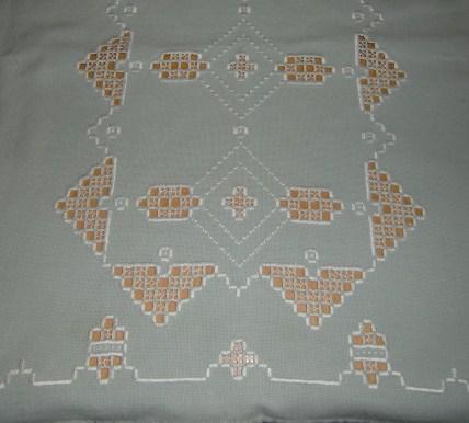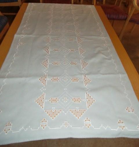 M875M Runner, tablecloth and tray rack in Hardanger stitching