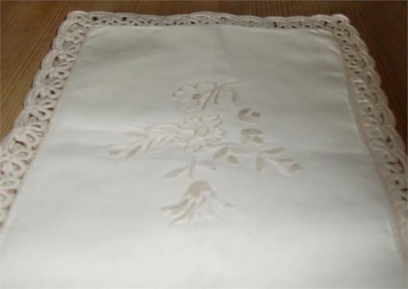 xxM1183M Handmade white stitching and lace tablecloth