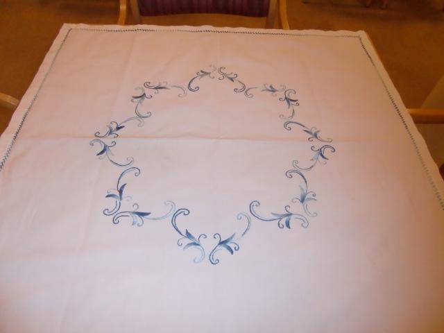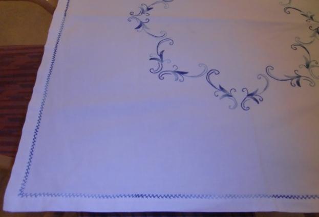 M778M Superb linen tablecloth in blue stitch embroider