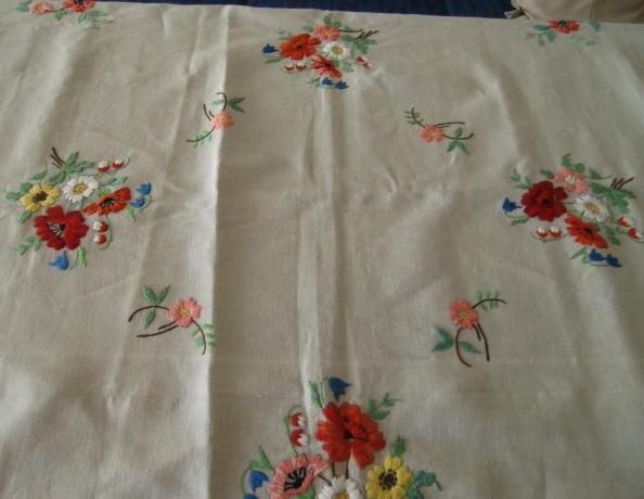 M789M Fabulous magnificent white stitching embroidery tablecloth from the 1920s