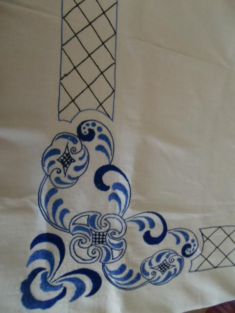 M778M Superb linen tablecloth in blue stitch embroider