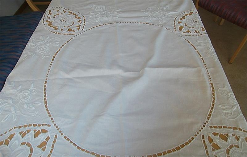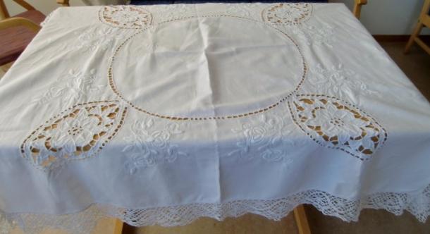 Fabulous magnificent white stitching embroidery tablecloth from the 1920s. This is perhaps the most special tablecloth in my collection. It is over 90 years and are in constant use. it along with the other white cloth was given to a wedding in 1919. Probably they were when new. It's a bit of a work that is put into the cloth. The tablecloth is in thick white linen and has gorgeous white embroidery. It is pristine condition. It measures 1,60 meters long and 1,50 meters wide.