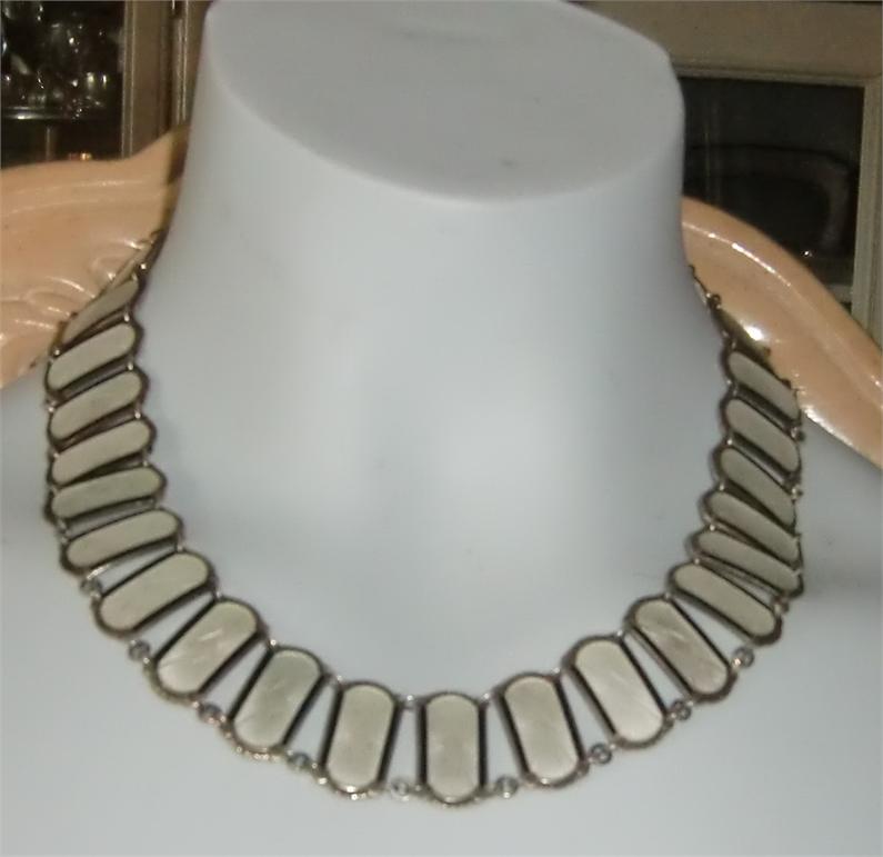 M850M Ivar T. Holth 925s and enamel NecklaceThis stunning necklaces are made from the well known Oslo, Norway company Ivar T. Holt. It is in white enamel with drawings and 925 silver. It belongs to the bracelet which is also shown. It is in outstanding condition. It measures 44.00 cm long and is 2.00 cm wide.