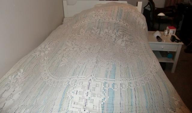 M913M Large hand crocheted bedspread, nice