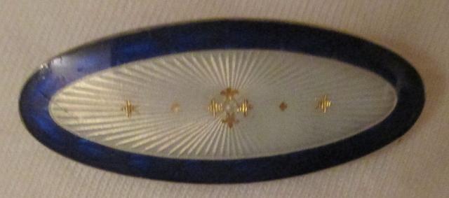M960M Silver and enamel brooch. A beautiful brooch in silver and enamel. It has blue border and white center with magnificent gold decorations. It is marked 930s which are rarely in Norway, but not impossible. Among other things, used the famous silversmith Marius Hammer 930s. Brooch measures 4 cm long and 1.5 cm at its widest. I have not been able to find out the silversmith who made the brooch. If I find out that l let you know. It is in very good condition. Because of the lighting, it looks like it has a scratch. It's not right.