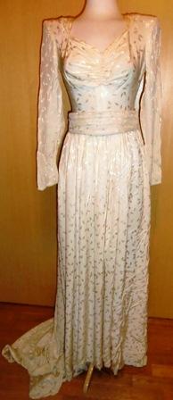 xxM1008M A9S Wedding dress from 1946.Wedding dress in thick silk. The dress is made of Molstad & co Oslo in 1946. It is very typical of the time fashion. In very good condition. Molstad and Co. (1883-1985) was one of the leading fashion stores in Oslo.