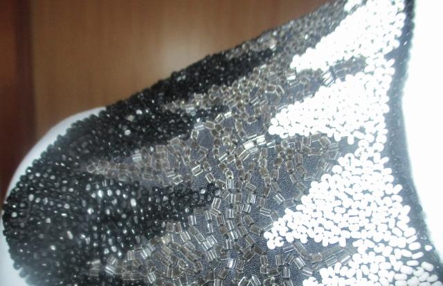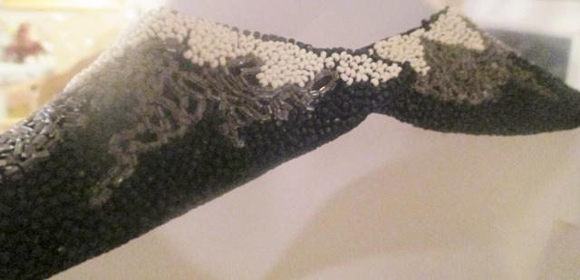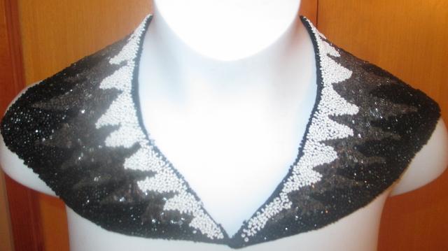 xxM1017M Art deco collar beaded. This beautiful pearl embroidered collar came along with a 1920s dress. It is assumed to be made in 1920-30. It is handmade and has a typical art deco pattern. Lined with black silk. No loose beads in excellent condition.