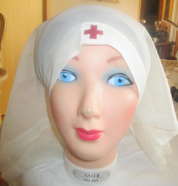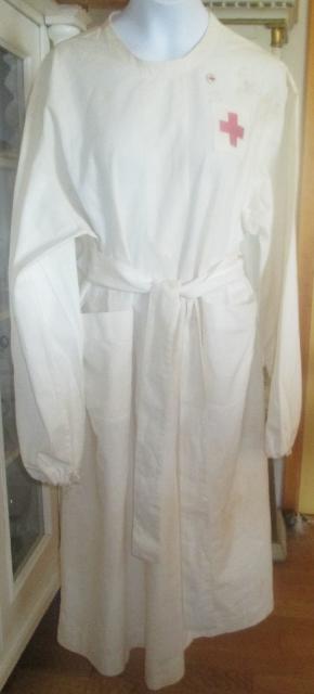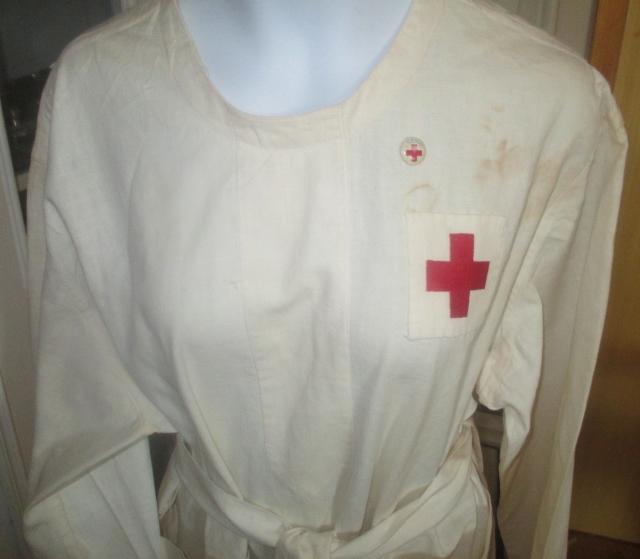 xxM1046M World War l 1917 Red Cross uniform. The Red Cross uniform, according to the seller of 1917. I am no specialist in uniforms, but I've seen similar on a photograph. Uniforms are made of linen and is in very good condition. It has a needle which reads 1 Serve. Headscarf with Red Cross symbol provided