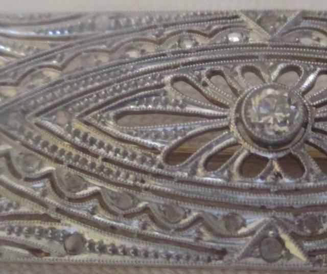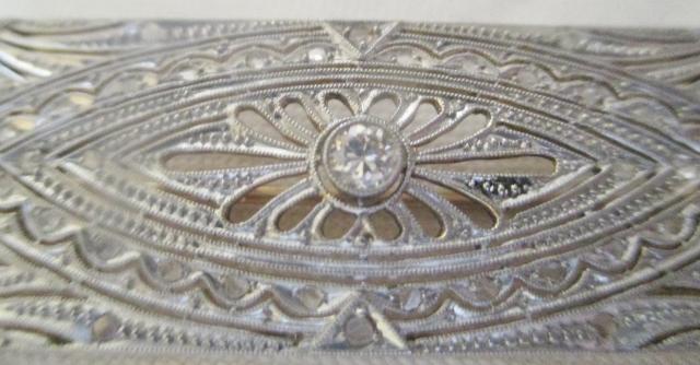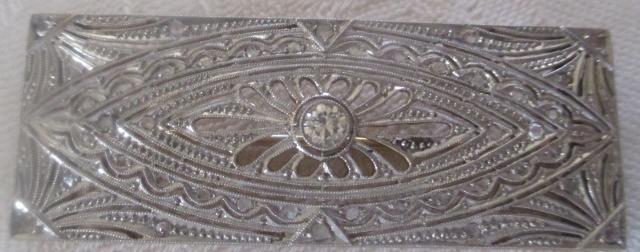 xxM1053M Original Art Deco Diamond Platinium 18K Gold Brooch. Beautiful Art Deco antique diamonds platinum 18k gold brooch. The brooch has a old cut brilliant in the center calculated weight 0,13ct. In addition, there are 40 old rose cut diamonds further enhancing the design of this lovely Art Deco brooch. It measures 45mm wide by 17.5mm high. Weight 8.3 grams. Excellent condition. Takst-Valuation N.Kr. 30 000
