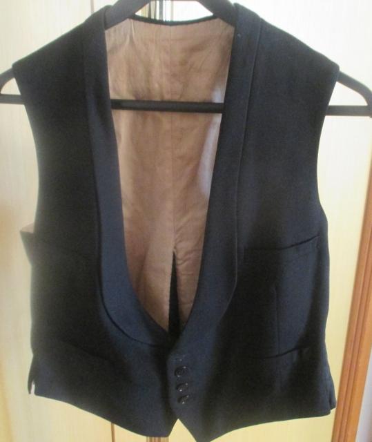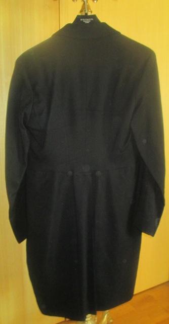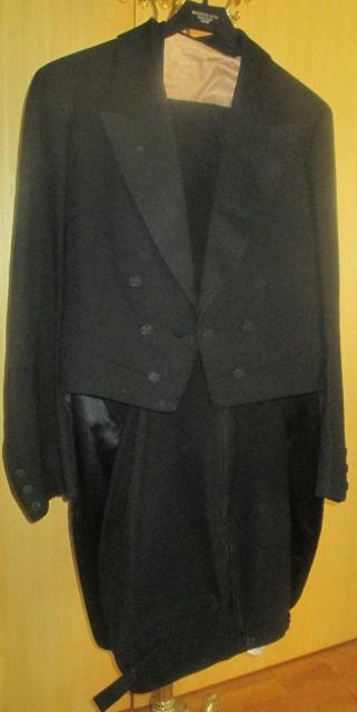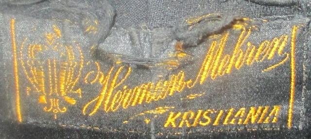 xxM1056M Antique Herman Mehren black wool three piece Tuxedo with long tail. It includes coat, vest and pants. Herman Mehren (1875-1941) founded in 1903 Herman Mehren. Until 1924 the name of the capital of Norway, Christiania. Then the city changed its name to Oslo. This tuxedo is made in the first years after Herman Mehren was founded. The tuxedo with long tail has leather buttons. Taken age into consideration is the tuxedo in excellent condition.