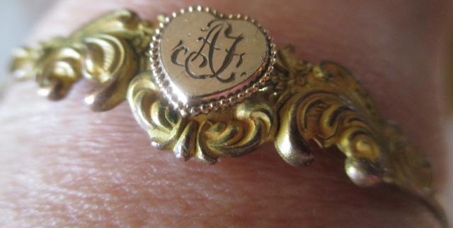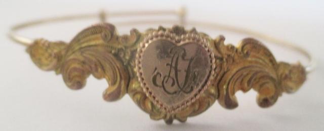 M825m Ca 1900 art Nouveau bracelet. Decorative bracelet probably late victorian or Edwardian. There is no stamp in it. To begin with I thought it was silver when it appears to be silver color in some places. I have tested it, some place it i gold plated, and some place it is 8-9k gold
