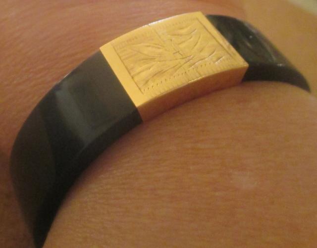 xxM1116M 14k gold and onyx jade bracelet and earrings. Vintage 14k Gold Black Onyx Jade BRACELET 1/4" tall and it is 2.5" in diameter. It weight 39, 3 grams.