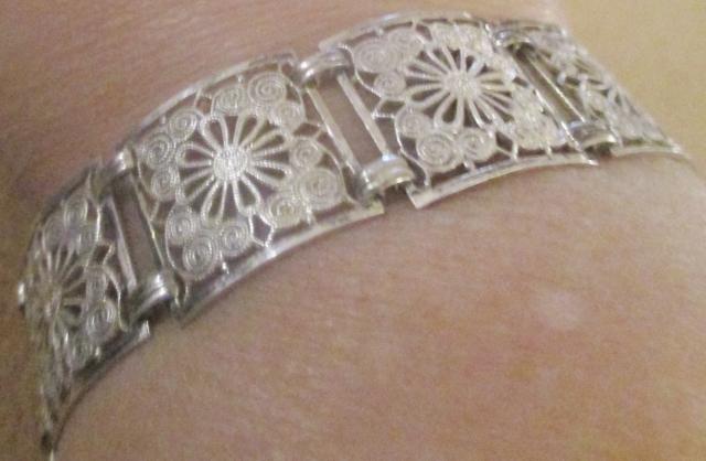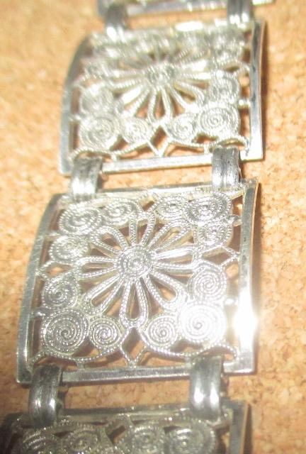 Beautiful bracelet with lovely filigree work in 835 silver. There are 20 cm long and 2 cm wide. It has a master brand , but I'm not able to decipher it. The bracelet is in outstanding condition.