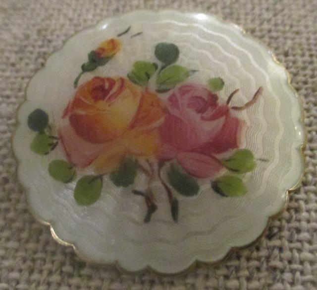 xxM1135M Beautiful flowers brooch showing roses by Ivar T. Holth. Beautiful brooch in perfect condition in 925S and enamel. It is round and 4 cm in diameter. Ivar T. Holth f. 1909 d. 1977