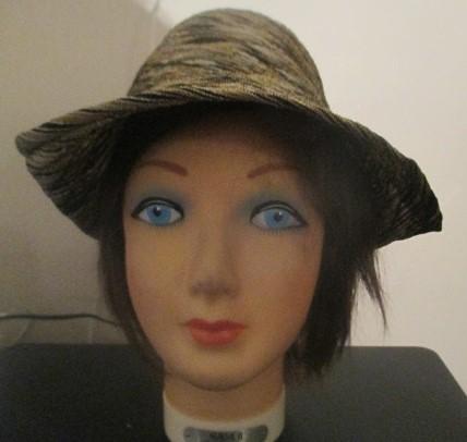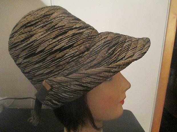gray~ camel ~ white swirl design fabric dress hat. Side and back flip up and