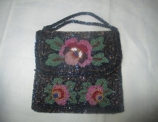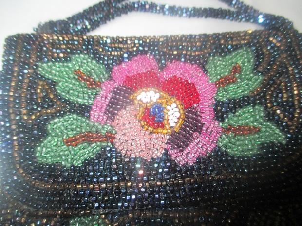 Lovely floral Victorian beaded evening handbag, rose floral motif.