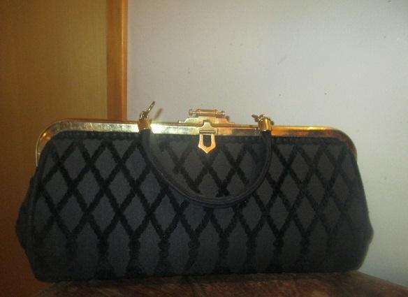 BEAUTIFUL VINTAGE ROBERTA DI CAMERINO BLACK CUT VELVET AND BRASS SATCHEL HANDBAG