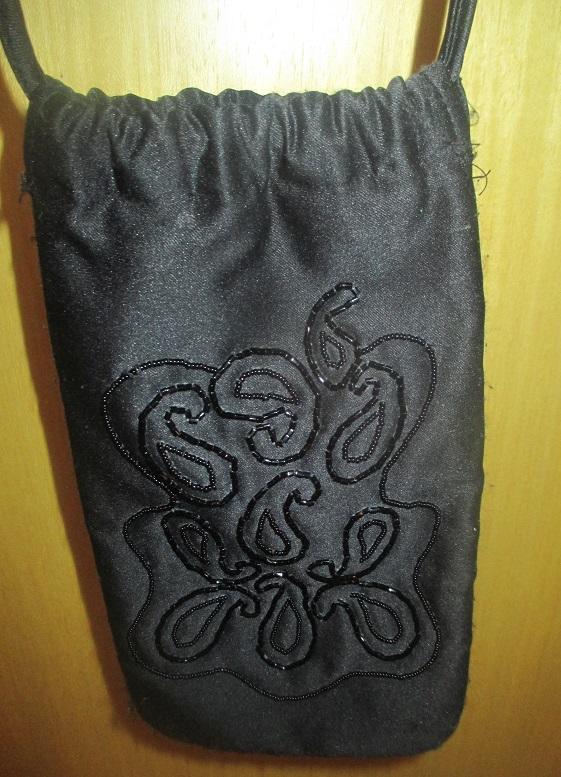 Vintage Christian Dior Parapluies Beaded Black Drawstring Bag.