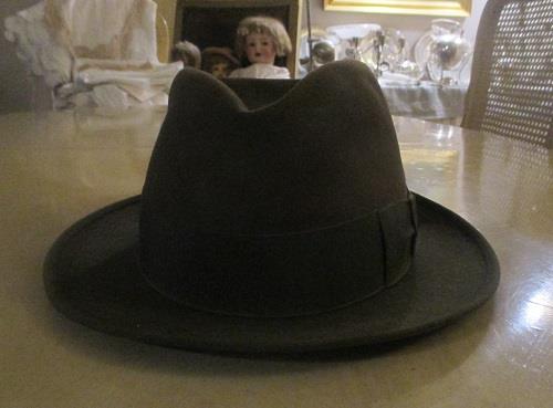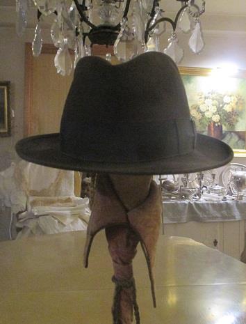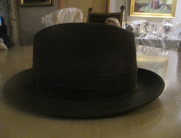 xxM1227M Borsalino Fedora Falco dark brown hat in very good condition. Guiseppe Borsalino (1834-1900) educated hat maker in Italy. Studied modern production methods in France. In 1857 the first factory was founded in Alessandria Italy. Borselino factory still exists and Borsalino fedora is the most famous of the hats. This hat was imported and sold by Gunnar Øye Bogstadveien 52. The store is known for ita quality products for men and woman. The shop was founded in 1927 and is one of the oldest stores in Oslo.