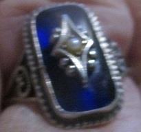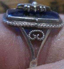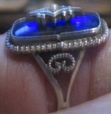 XXM1236M Vintage 8430 silver ring with blue stone. Ring made perhaps some year before 1920.The ring is in very good condition