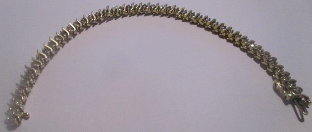 Ladies 44 round diamond tennis bracelet in 14k yellow gold. Diamond colour J, Clarity SI. Total carat weight 2,50 T.C.W. The bracelet weight 15,9 grams. It is in ecellent condition. Takst- Valuation N.Kr 35 000