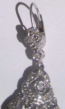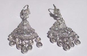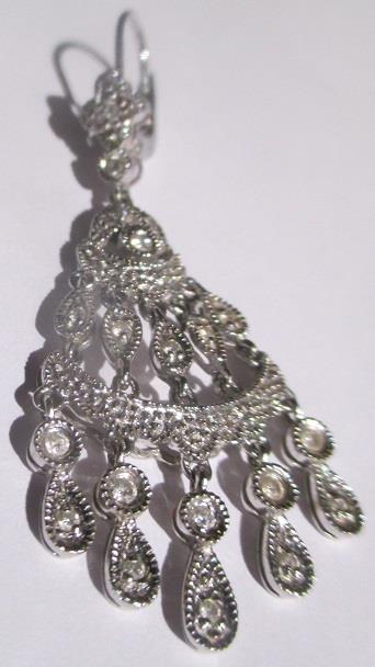 14k white gold Diamond flower chandelier drop dangle earrings Leverback filigree. Weight 8,2 gram, 40 brilliants calculated weight 0,40 ct.