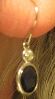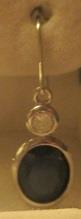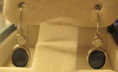 xxM1256M A pair of white gold earrings 1,2 grams with 2 sapphires about 7-6 mm 2 brilliants calculated weight 0,12 ct. Takst-Valuation N. Kr 7500