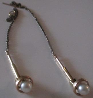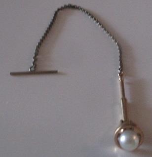Gold Art Deco shirt decoration with culture pearl. The decoration has link, they weigh 3,8 grams, two culture pearls 4,7 mm. They are in very good condition Takst-Valuation N.Kr. 8000