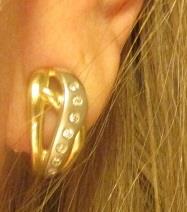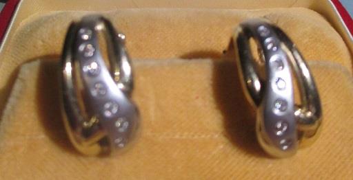 14K yellow and white gold natural diamonds pierced french clip earrings, weights 6,6 grams of 14k stamped and hallmarked 14 small diamond weigh 0,14 ct l-J color Sl 1- Sl 3 average clarity. In excellent unused condition. Takst Valuation N Kr 10 000