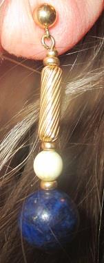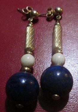 14k yellow gold natural blue two lapis lazuli and two bone dangle ladies earrings 7,4 grams. Takst-Valuation N. Kr. 5000