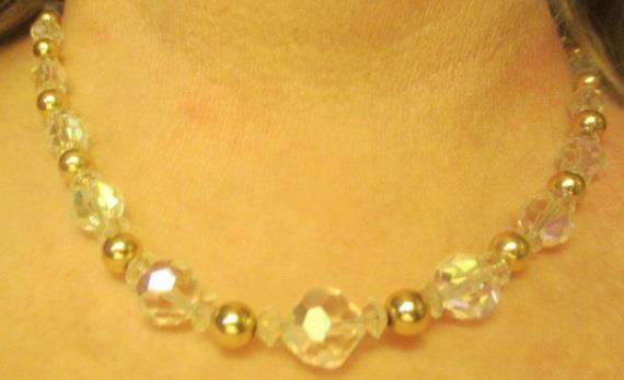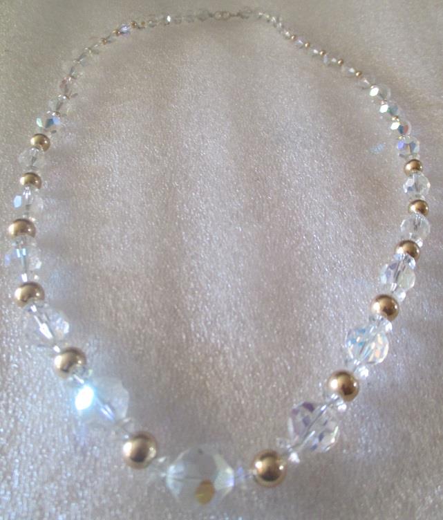 M329M Vintage 14K gold and austrian crystals necklace. Takst-Valuation N.kr. 6000
