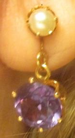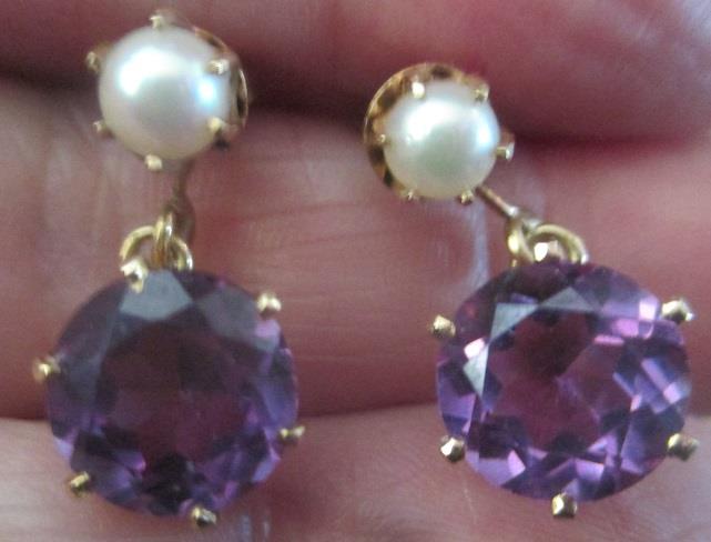 14k solid yellow gold, genuine culture pearl 4,7-4,8 and large faceted princess cut Kurunder pierce dangle earrings 5,4 grams. In excellent condition. Takst-Valuation N. Kr. 5000