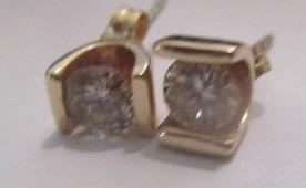 This pair of 14k yellow gold diamond stud earrings weigh 1 gram. The earrings each have a single round brilliant cut diamond measuring 3,85 mm wide and weighing as estimated 0,22 carats. The diamond are eye clean, and have been jeweler graded to be J in color and SI 2 in clarity. They are set in a classy u-shaped bar settting, the earrings have pushback backings. Takst-valuation N.Kr. 8000