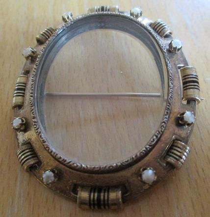 Thi is a very beatiful Victorian brooch medallion. It weighs 14,5 grams. It has eight half pearls and glass plates. This type of brooch was used for hair later photographs. It is in excellent condition. Takst valuation N. Kr. 15000