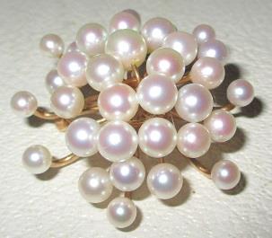 A yellow gold brooch/pendant weight 15,0 grams with 33 cultured pearls 4,5 - 7,00 mm. It is 5 cm high and 4,5 cm wide. The brooch is not marked, but test 14k gold. It is probably made in the early 1900s It is handmade. fredrik Georg Gade who is the appraiser for the goldsmiths and auctions in Oslo has appreaciated this brooch/pendant for kr. 20 000 (see picture)