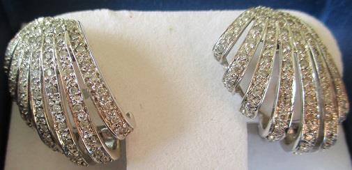 Designer 14k white gold pave diamond fan post earrings. weight is 7,9 grams. 142 brilliants calculated weight 0,70 ct. Post earrings with great working tight omega back. Amazing earrings. Takst-Valuation N. Kr.18 000