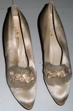 Wonderful Satin Wedding shoes from 1895, with Boston label. One of my favorite. In excellent condition. It is a part of a wedding ensemble used in 1895.