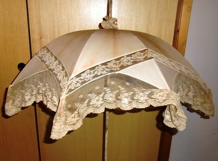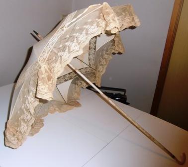 Cotton lace parasol with bone handle.