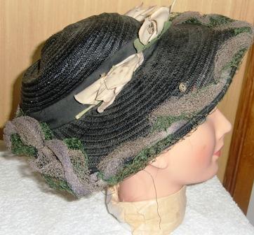 M66M Nice Straw hat with silk flowers. Made short after 1900 in very good condition. I bought the hat in London, no Label.