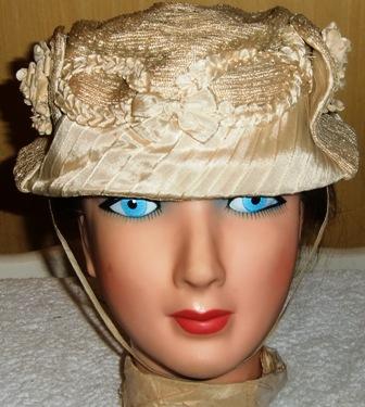 M74M Wonderful Hat. This is a fabulous hat from the 1890s. Immediately, it was assumed that the hat was older, it looked like the 1860s. By studying the label where it is written in gold letters: NK AB Nordiska Kompaniet Stockholm you will be informed that the hat is the 1890's because Nordiska Company was active in the 1890s. The hat is cream color and is made of horse hair, silk and velvet. This is a rarity.