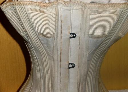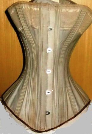 XXM86M Dr Warners Caroline corset 1878 Whale bones that broke and rusted iron that was a big problem for the corset industry. Some alternatives were designed Cooley was the first with the cork corset. Soon after, Dr. Warner introduced its caroline corset that was historic. Caroline comes from tequilla plant in Mexico. This corset is a thick woven cotton and is in very good condition.