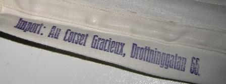 It is written: Imports: Au Corset gracieux, Drottninggatan 66