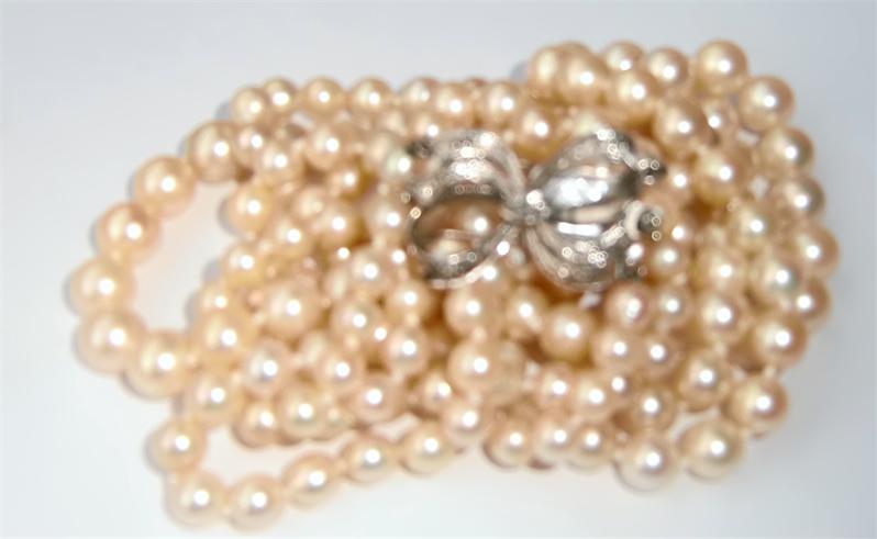 M147M Early 1900 3 stands pearl necklace Takst-Voluation N.Kr. 35 000